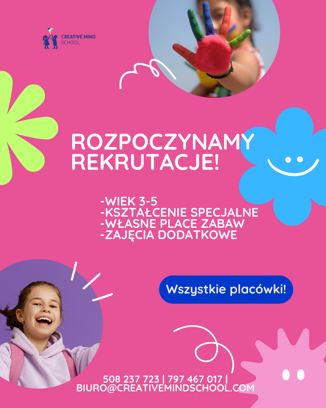 🎨 Trwa rekrutacja do żłobka i przedszkola Creative Mind School w Piasecznie i Warszawie! 🌟